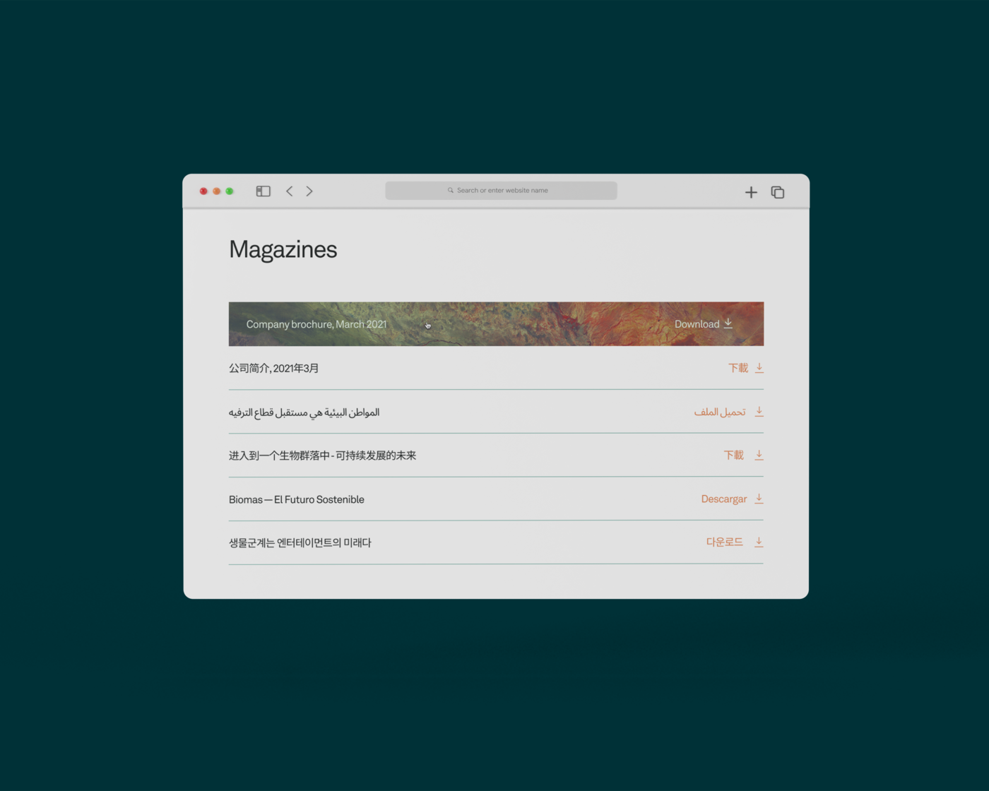 The website's main theme revolves around the drop symbol from the logo. Delicate, smooth lines and varying shades of green highlight the company's focus on natural environments.