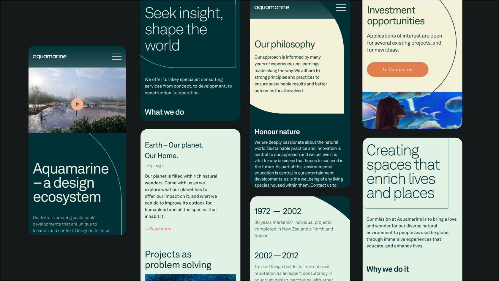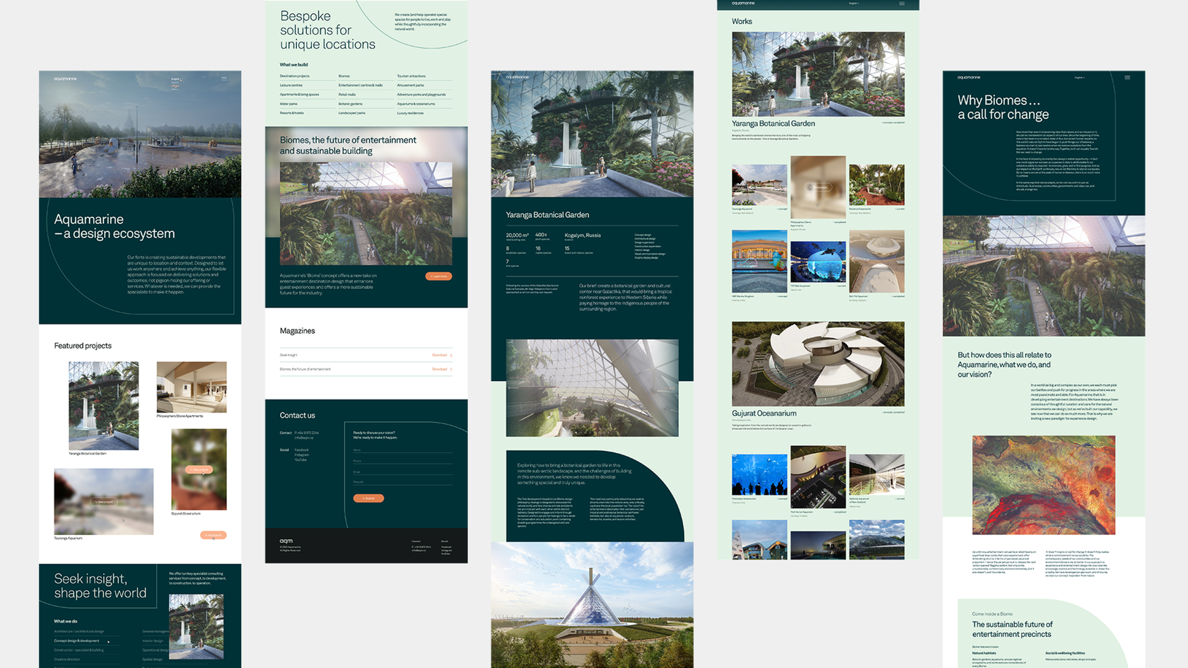 Aquamarine Company is specialized in the design, construction, and management of recreational spaces like aquariums, botanical gardens, adventure parks, and water parks. They asked for a website redesign because the old version appeared outdated.